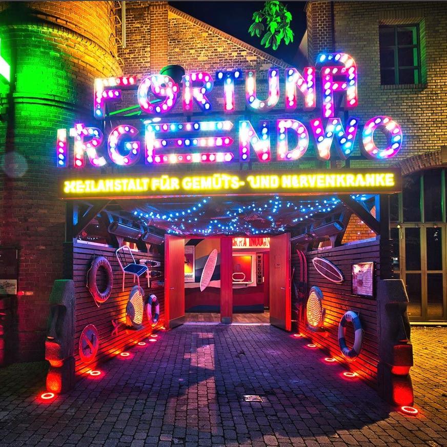 Natürlich ist diese so genannte „Heilanstalt“ nicht irgendwo in Frankfurt, sondern inmitten des Frankfurter Ostends. Ein spektakulärer Club mit dem offiziellen Namen „Fortuna Irgendwo“, gegründet vom Immobilien-Unternehmer und „Baukünstlers“ Ardi Goldman unter dem Dach des 1908 erbauten Kesselhauses auf dem Union Gelände – zwischen 1999 und 2013 Heimat des legendären King Kamehameha Clubs. Gründungsmitglieder war ein Team von Künstlern und der Architekt Ivo Nikolov, die hier ihre überbordende Fantasie mit bunten Farben viel Liebe zum Detail auslebten.