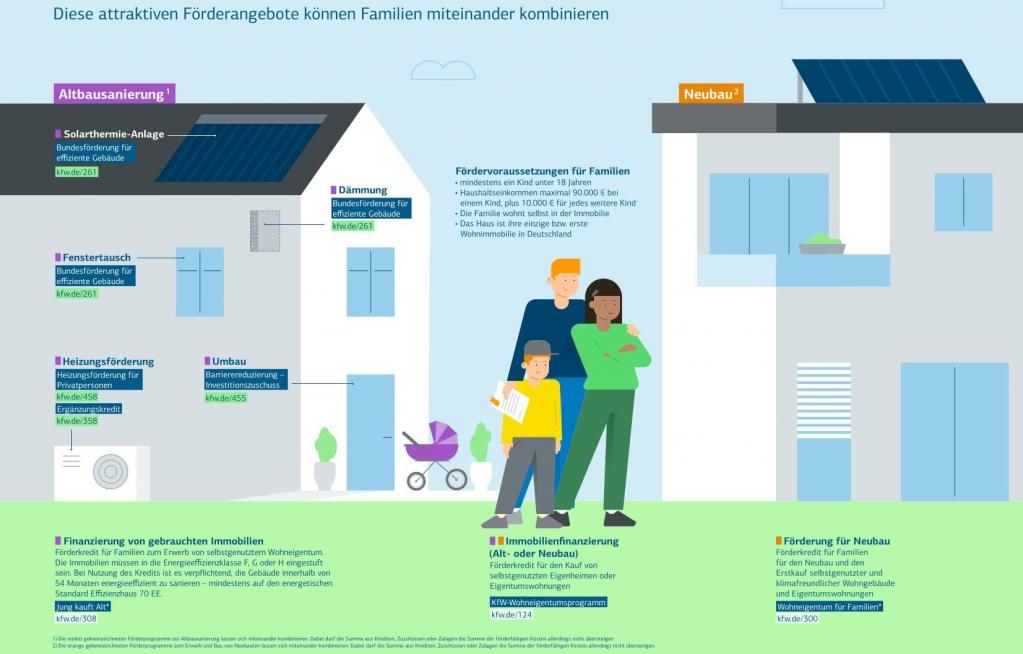 Antragsberechtigt sind Privatpersonen, die Eigentum von selbstgenutztem Wohnraum erwerben, bei denen mindestens ein minderjähriges Kind im Haushalt lebt und deren zu versteuerndes jährliches Haushaltseinkommen bis zu 90 000 Euro bei einem Kind beträgt, zuzüglich 10 000 Euro je weiteres Kind. Die Kredite können wie bei KfW-Förderkrediten üblich bei Hausbanken beantragt werden. Förderfähig sind der Kaufpreis und Grundstückskosten. Eine Kombination mit anderen Förderprogrammen sei grundsätzlich möglich, ebenso die Kombination mit BEG-Mitteln (Sanierungsförderung), so das Ministerium.