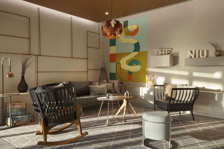 Mit 235 hochwertig ausgestatteten Hotelzimmern und 196 Long Stay Apartments wurde somit ein neues attraktives Angebot für die mehr als fünf Millionen Übernachtungsgäste geschaffen, die in Düsseldorf mittlerweile jährlich Station machen. Die in Summe 16 000 Quadratmeter des Gebäudes werden zu 85 Prozent durch das „the niu Hub Hotel“ sowie das Apartmentangebot „acora Living the City“ genutzt, die übrige Fläche ist für Büros vorgesehen. Die elegante Optik und hochwertige Ausstattung des Gebäudes setzt sich im Inneren bis in die kleinsten Details fort, wo klare Formen auf warme Farben und weiche Stoffe treffen und gestalterische Verbindungen geschaffen werden.