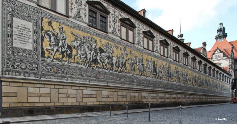 Der „Fürstenzug“ in Dresden hat seinen Meister gefunden. Lange Zeit galt das 102 Meter lange, überlebensgroße Bild eines Reiterzuges, aufgetragen auf rund 23 000 Fliesen aus Meißner Porzellan, als größtes Fliesenwandbild der Welt. Es wurde im Jahre 1907 auf der Außenseite des Stallhofs vom Dresdner Residenzschloss angebracht und stellt die Ahnengalerie der zwischen 1127 und 1873 in Sachsen herrschenden 34 Markgrafen, Herzöge, Kurfürsten und Könige aus dem Geschlecht des Fürstenhauses Wettin dar.