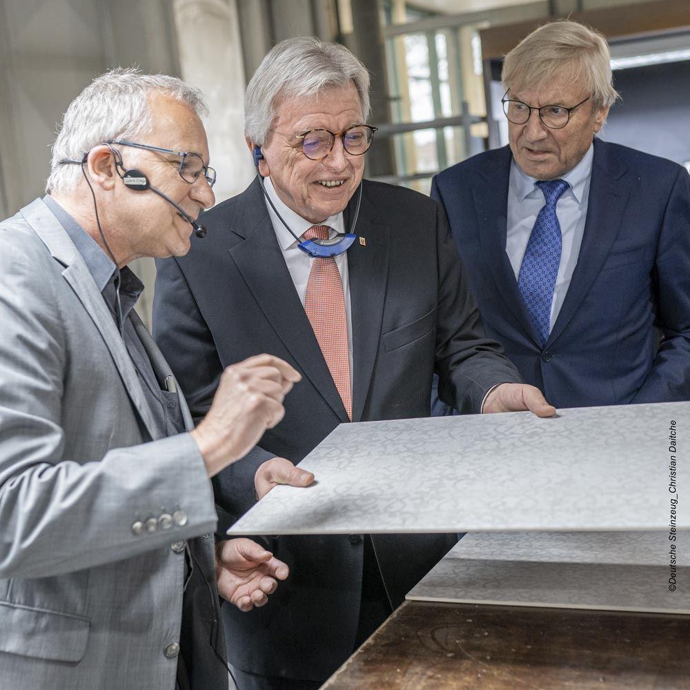 Bei einem Rundgang des ehemaligen hessischen Ministerpräsidenten Volker Bouffier und CDU-Landtagsabgeordneten Oliver Krauß durch das Werk der Deutsche Steinzeug Cremer & Breuer AG (DSCB) in Alfter-Witterschlick, informierten sich die Politiker Ende April bei dem Keramikhersteller über den aktuellen Anlass zur Sorge: Energie.