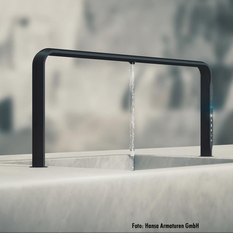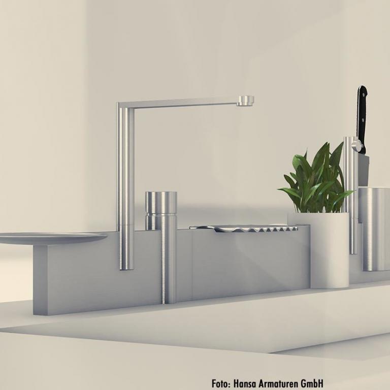 Auch Armaturenhersteller Hansa hat sich gefragt: Welche gesellschaftlichen Aspekte spielen bei der Entwicklung des Wohnens eine Rolle? Wie könnte sie aussehen, die Küchenarmatur der Zukunft und welchen unerwartet neuen Komfort und Funktionen kann sie dem Nutzer in der Küche bieten? Und hat die Fragen direkt weiter gegeben an ein Team junger italienischer Designer unter der Leitung des Produktdesigners Giulio Iacchetti und dem Motto „Are you ready for the intelligent future?“